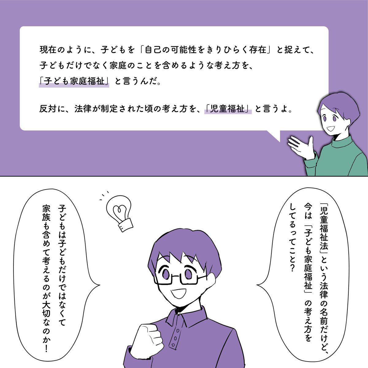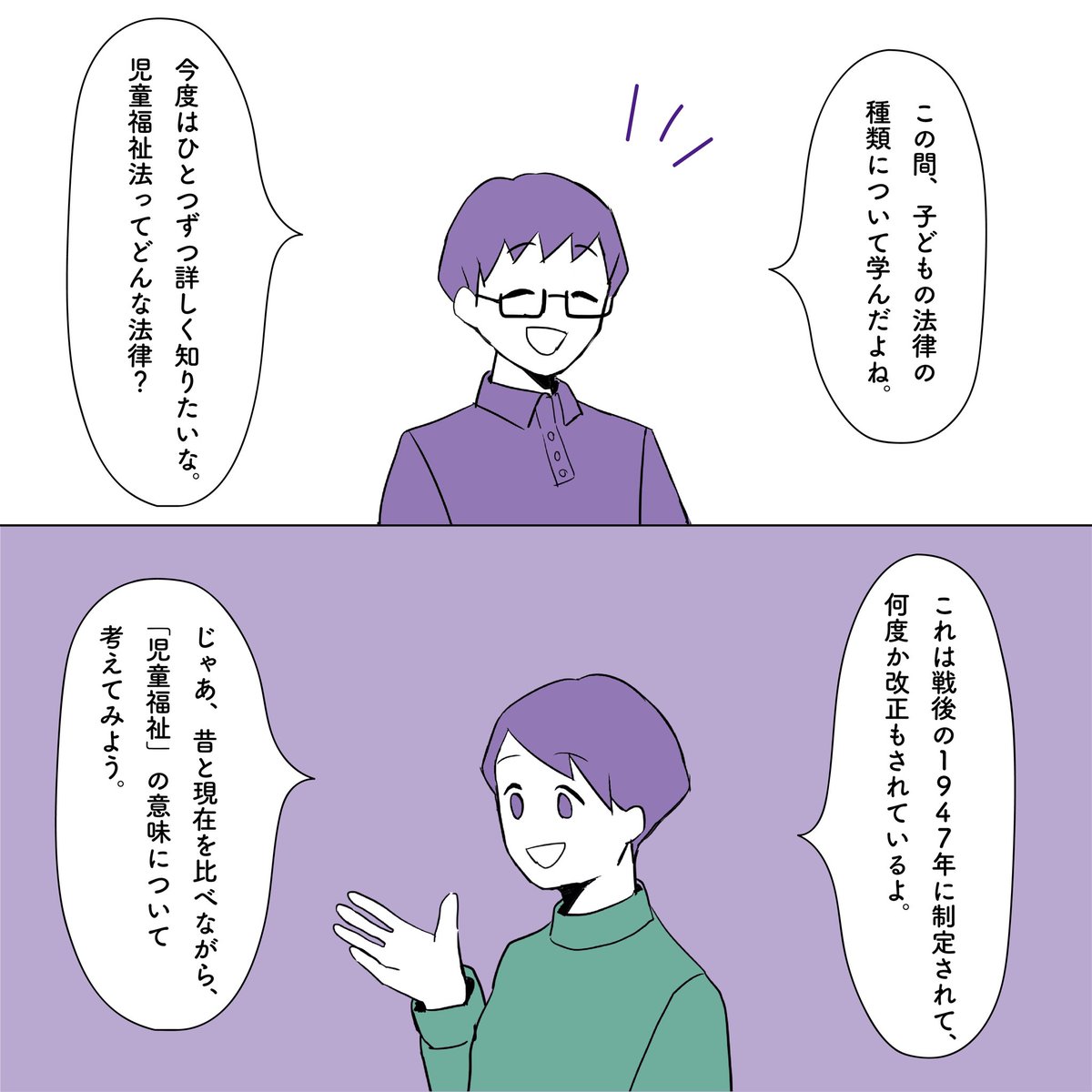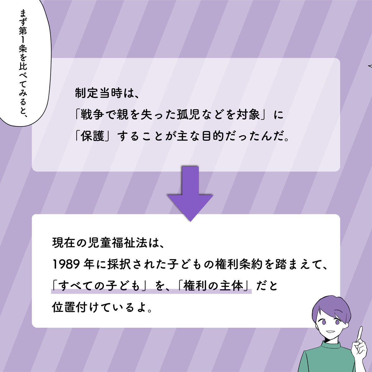 子ども家庭福祉① 子どもに関する法律を紹介するシリーズの第1回目です! 今回、紹介するのは「児童福祉法」 法律の概要を見ながら、日本での子どもに関する考え方の変遷を辿っていきます。 #Rettborne #児童福祉法 #児童虐待防止 #社会的養護 #漫画が読めるハッシュタグ #イラスト
