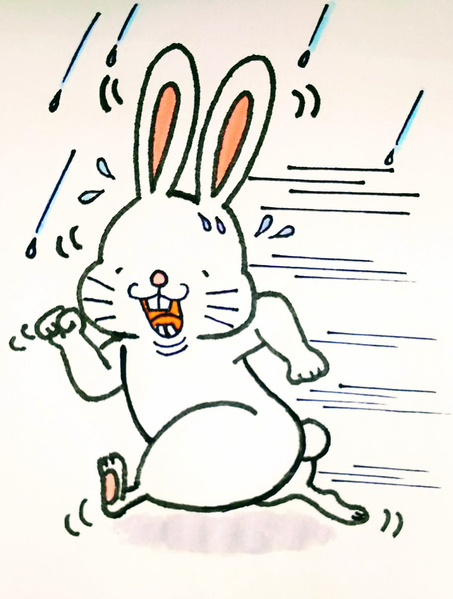 こんにちは🌈 前歯うさぎさんです🐰🥕 【ポツリ...ゲリラ豪雨5秒前! ~走れメロスダッシュ!~】 #イラスト #前歯うさぎ #絵描きさんと繋がりたい #rabbit #illustration #art #design #ゲリラ豪雨 #ダッシュ #全力 #ゲリラは突然に #晴れじゃなかったんかーい