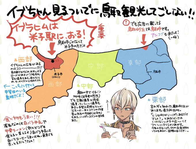 #全国にじさんじ5周年広告 でイブラヒムを求めて鳥取へ来ようと検討中の人達においしいものを教えたい。 あと砂丘があるのは鳥取市だけど広告があるのは米子市だから気を付けて(西側と東側で全然真反対)