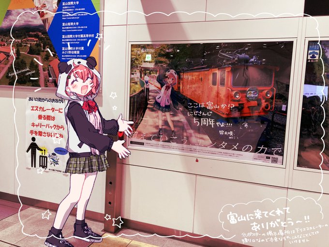 #笹の絵 #全国にじさんじ5周年広告 何故笹木さんが富山に…?和歌山じゃなくていいの…?とにじさんじに詳しい友人に聞いたところ、どうやら日本を全て富山県にしようとしたことがあると伺い、嬉しかったので見に来ました👉😊47都道府県の中から富山を選んでくれてありがとうございます♡(でも なぜ?)