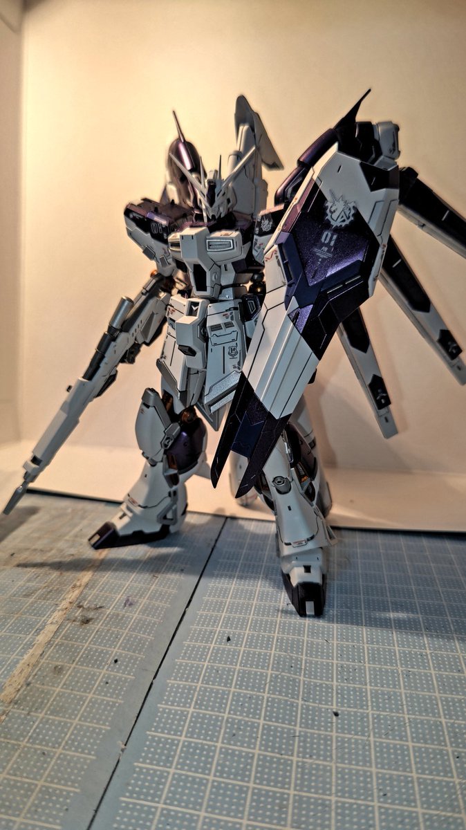 はい、ついに完成しました!RG Hi-νガンダムです✨ 久しぶりに全塗装したぁ😁 途中、雨が続いたりで作業が止まったりしたからどうなるかと思ったけど、完成しました(`・ω・´)キリッ 台座が行方不明なのでこれで許してください💦 #ガンプラ #全塗装 #νガンダムは伊達じゃない