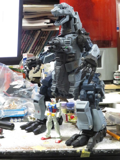 #全日本変態モデラー選手権開幕 並みいる皆さんほど大したことしてなませんが一応。。The特撮collectionのメカゴジラをスーツ準拠のフルアクションに改造して、削り落とした全身のリベット約800個、Rリベット300と虫ピン500ほどを貼り直しました😅 #the特撮collection #メカゴジラ