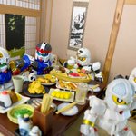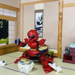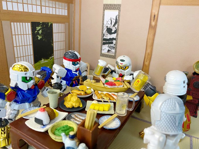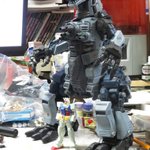 #全日本変態モデラー選手権開幕 ここの人達皆、頭おかしいですよ(^^; ダグラム、アオシマイデオン、ロッグマックが居間でTVをみるポーズやってみた。 だが、しかし、最近のガンダムはHGノーマルでこれができるのでバンダイの方がもっと変態だと思う。