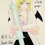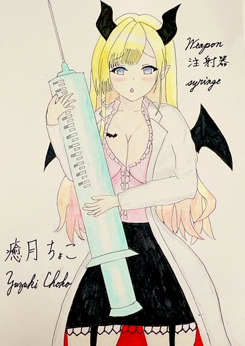 10月16日のお絵描きは癒月ちょこさん。 武器:注射器 保険医ちょこ先生にはやっぱり巨大注射器が似合うと思い、装備させてみました🥰 ご本人は血が苦手なのですがね😅 #しょこらーと #全JPホロメンに武器を装備させる