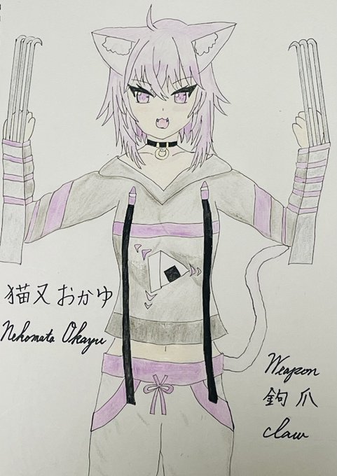 10月17日のお絵描きは猫又おかゆさん。 武器:鉤爪(かぎつめ) おかゆんは猫だから爪で攻撃するだろうと思い、鉤爪を装備させました。 優しいおかゆんが攻撃出来るのかは不明。 #絵かゆ #全JPホロメンに武器を装備させる