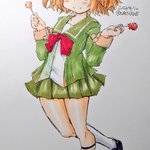 #八丈 #艦これ版深夜の真剣お絵描き60分一本勝負 #艦これ版真剣お絵描き60分一本勝負_20220707 暑くなったので肩出しワンピのお子さまが多くなってきたので、ハッチーにも着てもらいました いつもの服だと暑そうだし、丸い肩ってなんだか可愛くないですか?