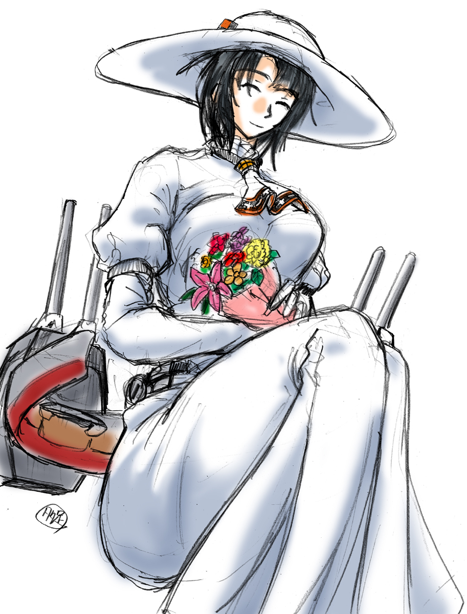 #艦これ版深夜の真剣お絵描き60分一本勝負 #艦これ版真剣お絵描き60分一本勝負_20220512 八吋様仕様の高雄に、進水日ということでお祝いに花を持たせると、こう、なんか違う式典みたいな雰囲気が…… #あなたのTLに重巡を #八吋様