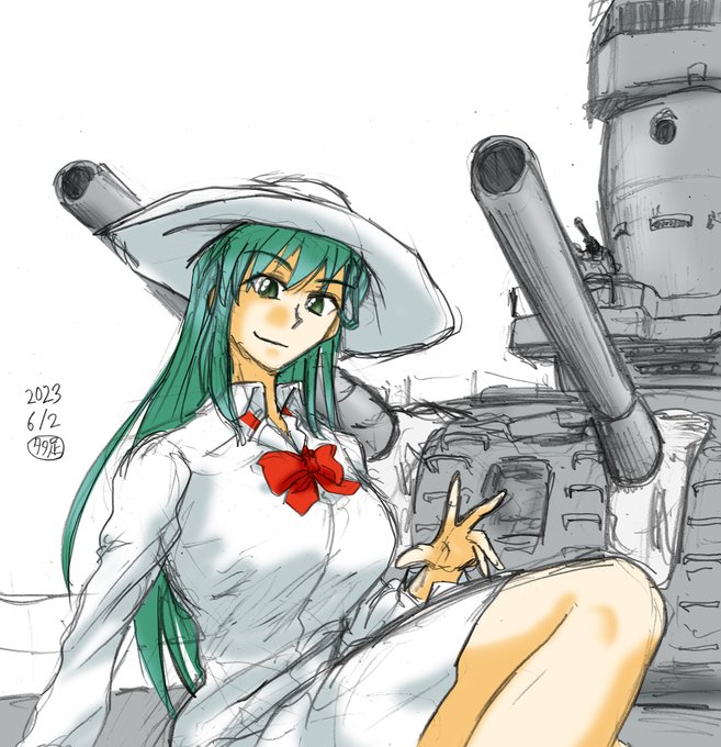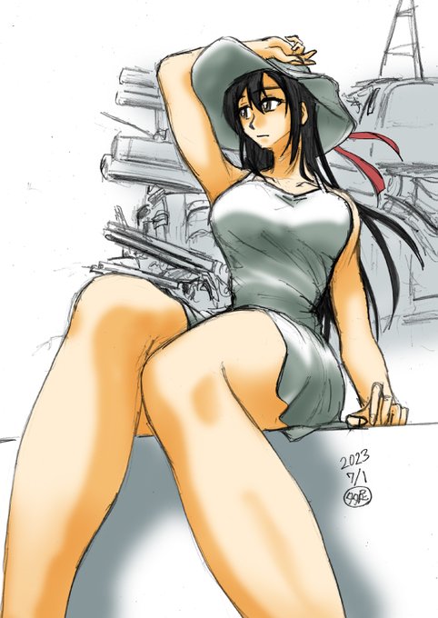 #艦これ版深夜の真剣お絵描き60分一本勝負 #艦これ版真剣お絵描き60分一本勝負_20220509 鈴谷。 艤装有り八吋様にするつもりだったけど、脚描いててそこに付く艤装のことを思い出すのが遅かった…… いっそザクの脚ミサイルみたくふくらはぎに着けるか? #八吋様 #あなたのTLに重巡を