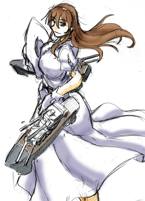 #艦これ版深夜の真剣お絵描き60分一本勝負 #艦これ版真剣お絵描き60分一本勝負_20220512 八吋様仕様の高雄に、進水日ということでお祝いに花を持たせると、こう、なんか違う式典みたいな雰囲気が…… #あなたのTLに重巡を #八吋様