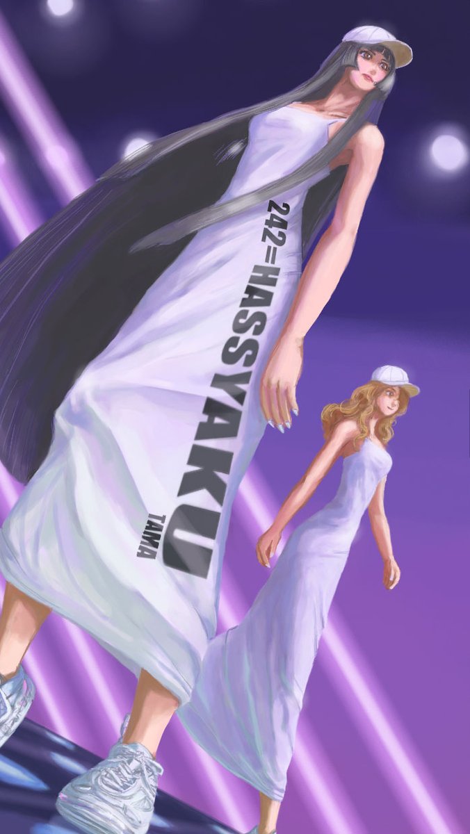八尺様がいる風景のランウェイ編。 何時もと違ってキャップにキャミワンピにスニーカーといった装いにしました。 「242=HASSYAKU」は、八尺様オリジナルのファッション・ブランドです。#オリジナル #八尺様 #HassyakuSama