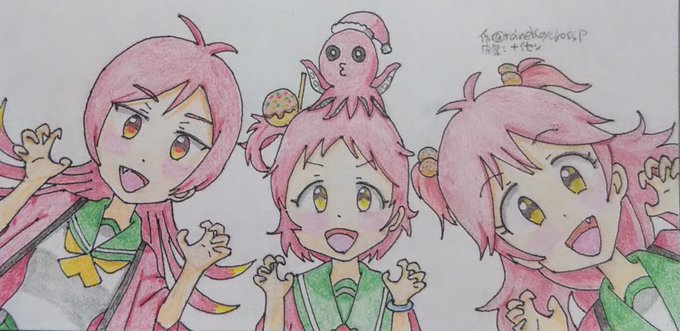 #11月26日はたまプラたん擬人化2周年 お祝いイラストに色を塗りました! #たまプラたん 、おめでとうございます!🎉🎂✨🎁✨(*≧∇≦)ノ🐈️ #八尾たん #天神1号たん #所沢たん #ビッカメ娘 ( #ナイセン ) #ファンアート #色鉛筆 #絵描きさんと繋がりたい twitter.com/toinekoxcros…