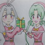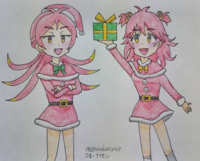 サンタさんな #八尾たん と #なんばたん 描きましたー!(*≧∇≦)ノ🎄✨🎁✨🐈️ 「メリークリスマス!🎉」 #クリスマスイラスト #ビッカメ娘 ( #ナイセン ) #ビッカメ娘を描き隊 #ファンアート #色鉛筆 #絵描きさんと繋がりたい