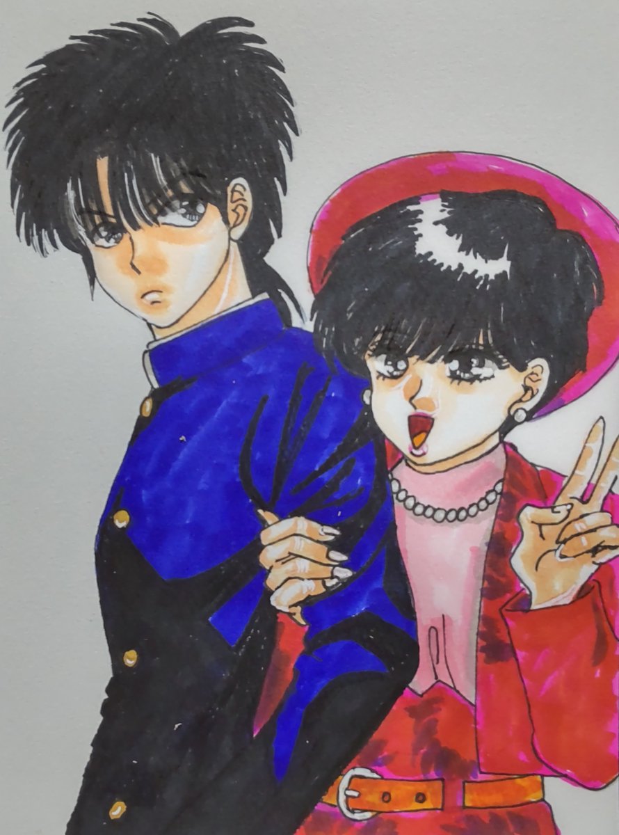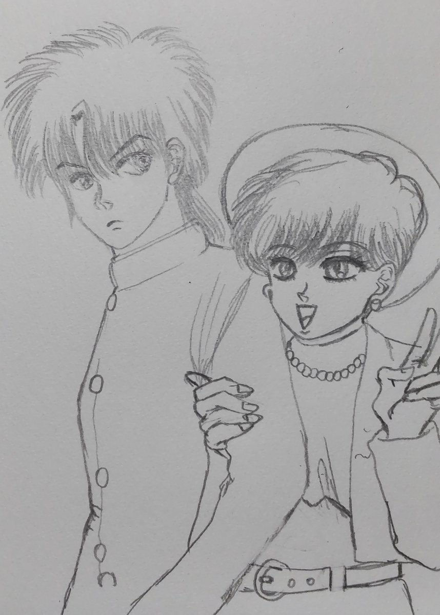 中学時代の描き方を思い出して楠桂先生の八神くんの家庭の事情から八神裕司と八神野美を描きました✍ やっぱりあの時代から私の絵は止まってます😭 こんな下手くそじゃあの時の友人に「先生を侮辱してる」と言われても仕方が無いなと思いました。 #八神くんの家庭の事情 #落書き