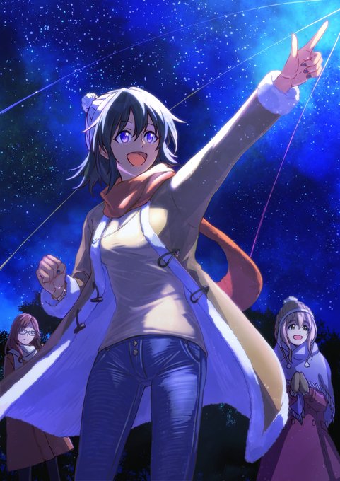 skebやらせて頂きました。 「流れ星を探して空を指差してるナターリア」です。 勝手にコンステ流れ星キセキの西園寺琴歌さんと八神マキノさんも一緒に描きました。 skeb.jp/@348twit/works… #Skeb #Commission @skeb_jpより