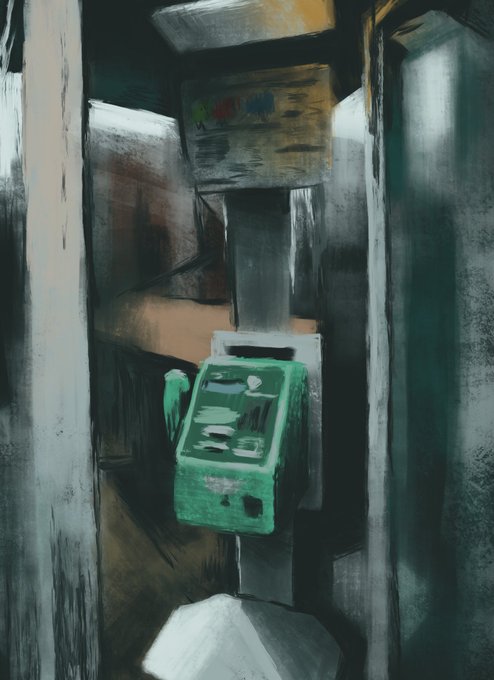 お散歩で見かけたものを キャラ化したもので #二次創作 #セルフ二次創作 #公衆電話 #漫画が読めるハッシュタグ #漫画 #イラスト好きな人と繋がりたい #絵描きさんと繋がりたい #絵柄が好みって人にフォローされたい #1日1絵