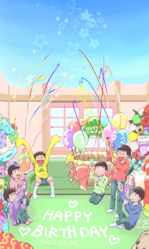 むつごちゃん〜!お誕生日おめでとう🎊 6人一緒に健やかであれ☀️ 今年もびっくらぶ!!!!!! #松野家6つ子生誕祭2022 #おそ松さん6つ子の誕生日 #六つ子が生まれたよ #5月24日はおそ松さん6つ子の誕生日