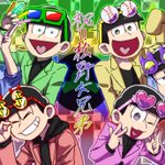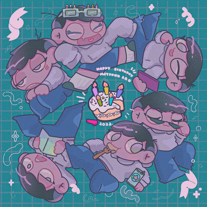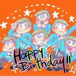 前に描いたやつを加工した即席で申し訳ないけど…むつごちゃん達、お誕生日おめでとう〜!!🥳🎂✨ いつまでも愛される作品でありますように♪❤️💙💚💜💛💗 #松野家6つ子生誕祭2022 #六つ子が生まれたよ