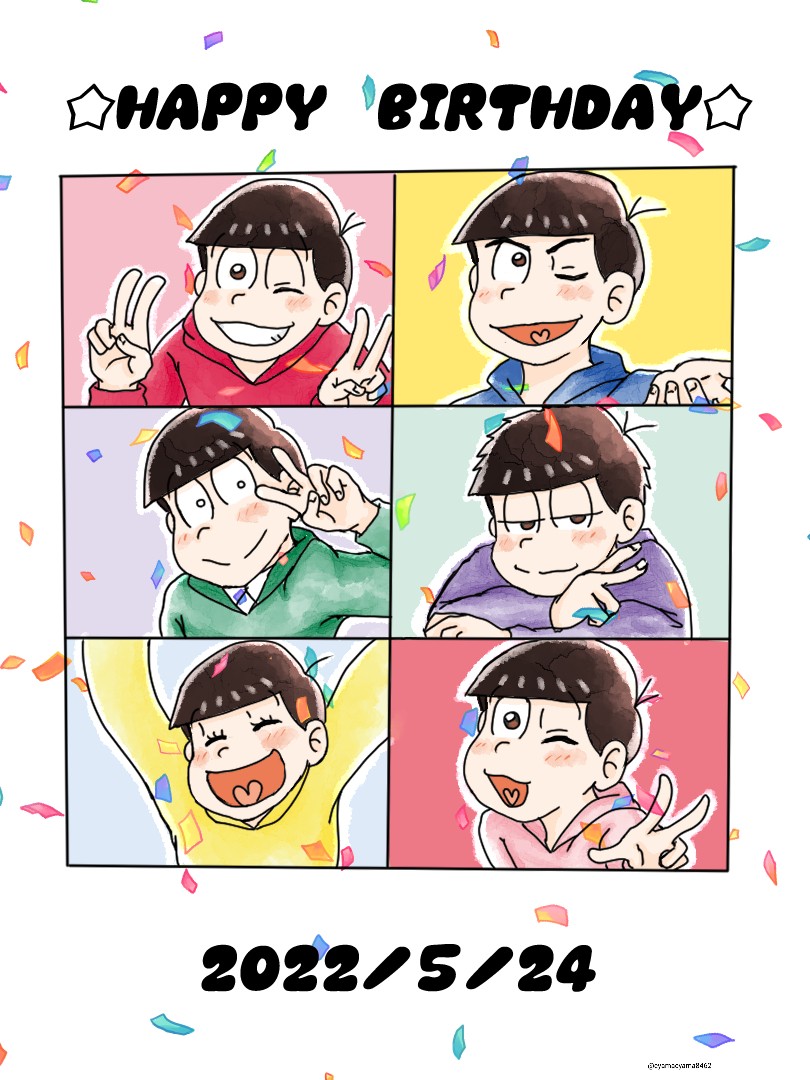 #松野家六つ子生誕祭2022 #松野家6つ子誕生祭2022 #5月24日はおそ松さん6つ子の誕生日 #おそ松さん生誕祭 #六つ子生誕祭 ハッシュタグ多すぎてどれ使えばいいかわからん!ww おめでとー!!!🎉