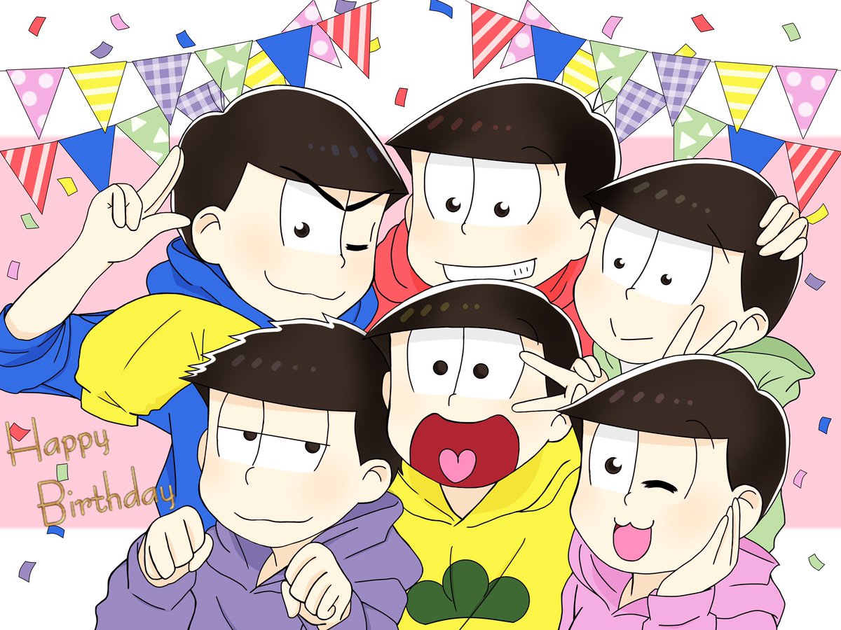 六つ子ー!!!!! お誕生日おめでとう!!!これからも大好き!!!いっぱい笑顔でいて欲しい!まだ再熱してそんなに経ってないけど皆との思い出たくさんある!!沢山松したい! #松野家6つ子生誕祭2023 #六つ子生誕祭