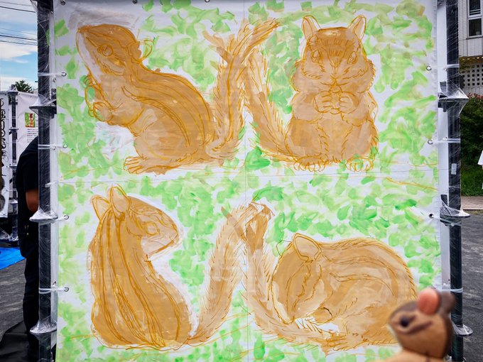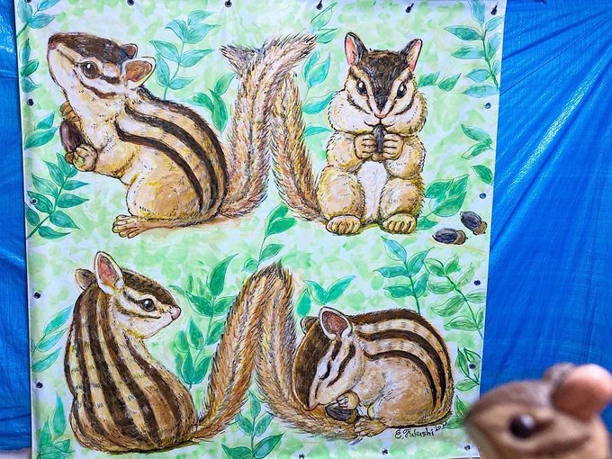 おはようございリス! 本日 #六本木アートナイト 2022 アートにエールを!広場 六本木西公園 ライブペイント 9/18日10〜13時が必ずいる時間 雨の場合はテント内で制作 13時以降も制作予定 9/19日に同会場にて描いた絵を展示、他では展示しない作品 よろしくお願いシマリス🐿 #リス #イラスト