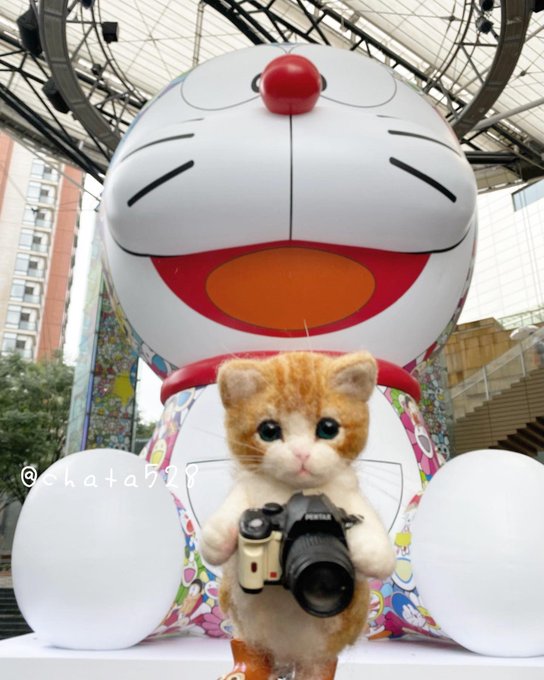ニャニャーン!六本木アートナイト2022に、大きなドラえもんの写真を撮りに行ったのニャー(∩ˊᵕˋ∩)・* 10mのドラえもんは、凄い迫力でしたよꉂꉂ(ᵔᗜᵔ∗) #羊毛フェルト #六本木アートナイト