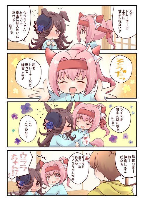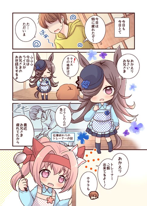 【プリステ23R新刊】見習いトレーナーが小さいウラライスをお育てする漫画のまとめです。本文フルカラーで描き下ろしあります。お手元に置いてくれると嬉しいです🌸🍚メロンさんで予約始まってます【メロンブックス】melonbooks.co.jp/detail/detail.… #六畳一間にウマ娘 #プリステ23R