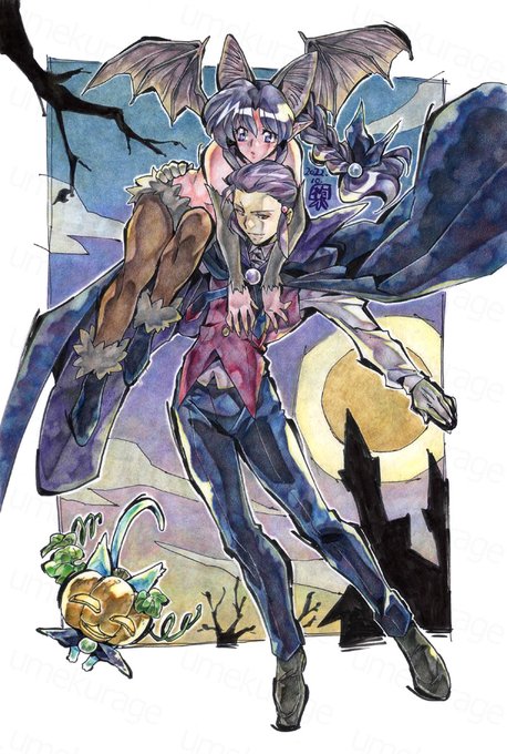 #共通テーマお絵描き 【ハロウィン】 こちら参加させていただきます🎃👻🍭 双子の精霊(契霊)こと、レイルアーとスイセアーに衣装を着てもらいました🦇🍷 目を離すと喧嘩を始めるのでご注意を💀 twitter.com/fal_reto/statu…