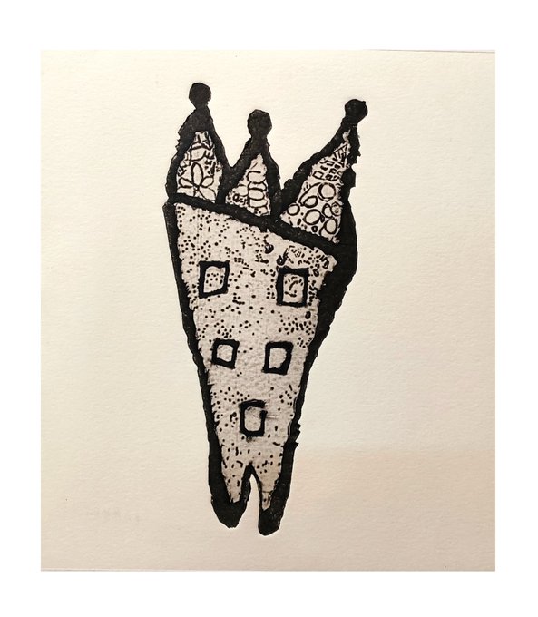 #イラスト好きな人と繋がりたい #絵描きさんと繋がりたい #イラスト #絵 #紙版画 #個と向き合うこと #集合体と向き合うこと #共鳴 #シリーズ 捨てられたボール紙が、私を作り、私を動かすのか。紙と向き合いながら、一日一版を継続。 title「星屑の家2023」No.2
