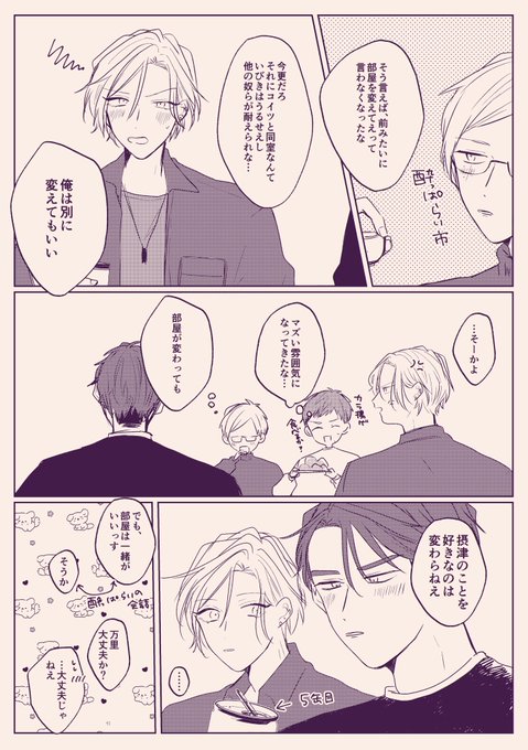 お題 (頬が)染まる でお邪魔します。 最後まで遅刻参加失礼しました🙇♀️ 素敵なお題を1年間ありがとうございました! 来年も楽しみです💓 #兵摂版深夜のワンドロ一本勝負 @hyose__60