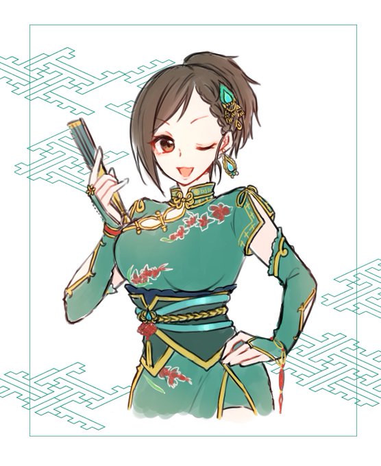 兵藤レナさんお誕生日おめでとうございます。 勝負強さとかっこいい雰囲気がたまらないキュートさん。 チャイナ風衣装はレナさんの大人な色気が発揮されてて最高だと #モバマス版深夜の真剣お絵かき60分1本勝負 #兵藤レナ生誕祭2022