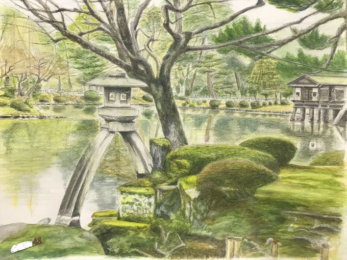 makuro7.com #絵 水彩画 おすすめ 風景 #水彩画 おすすめ 風景 #金沢兼六園 作品48 ブログ更新済。 関連URLも貼っております。是非ブログ makuro7.comを見てくださ~い #金沢兼六園 #金沢市 #兼六園