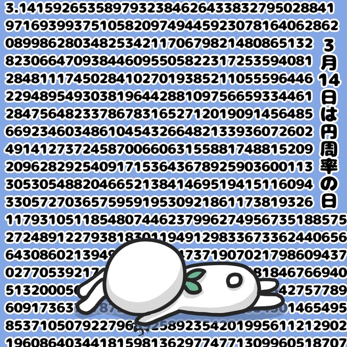 おはようございます✨ どデカ目うさぎが円周率を覚えるって張り切ってたけど、そろそろおぼえたかな? #イラスト #どデカ目うさぎ #イラスト好きさんと繋がりたい #illustration #みんなで楽しむTwitter展覧会 #円周率の日