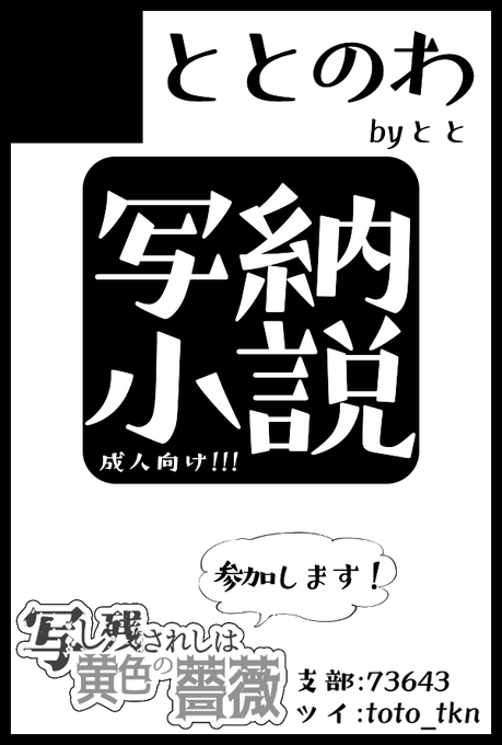 【サークル参加します!!】5月4日超残狂ハルシネイト内 写納プチオンリー「写し残されしは黄色の薔薇」| #写納プチオンリー #写し残されしは黄色の薔薇 joscarlpuchi.wixsite.com/0504 新刊出せるよう頑張ります!