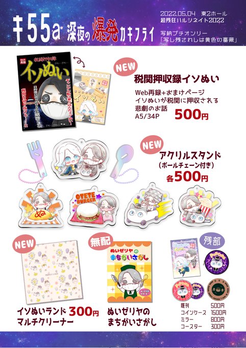 0504超残狂ハルシネイト 【東2 キ50a】 当日のお品書きです、ノベルティはイベント限定で先着順のお渡しとなります(数に限りがあります)🐈⬛ #写し残されしは黄色の薔薇 #写納プチオンリー twitter.com/ihirocat/statu…