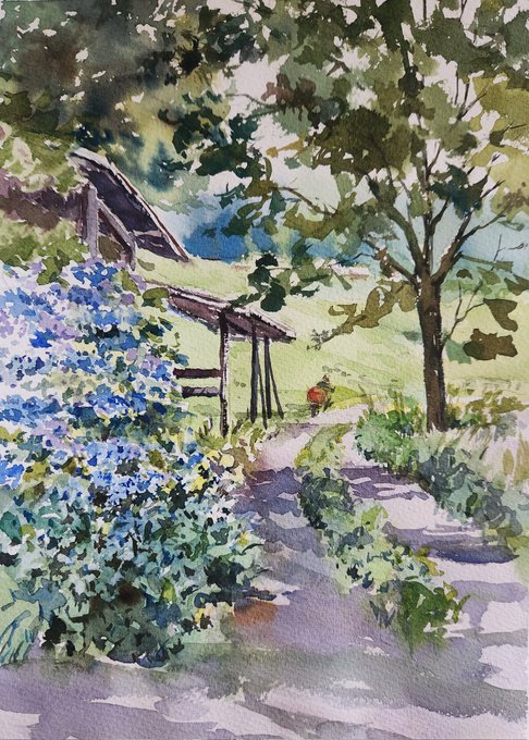 先日訪ねた高原での一枚。猛暑の東京には申し訳ない位、爽やかでした。#野外スケッチ #スケッチ #透明水彩画 #水彩画 #写生 #清里 #清泉寮 #風景画 #firldpainting #outdoorsketching #outdoorpainting #watercolour #watercolor #landscapepainting #kiyosato #seisenryo #sketch #aquarelle