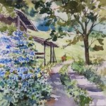 先週剪定した直後、花の残っている色が綺麗だと思い、捨てる前に。 #野外スケッチ #スケッチ #透明水彩画 #水彩画 #剪定 #紫陽花 #写生 #watercolour #watercolor #pruning #hydrangeas #sketch #aquarelle