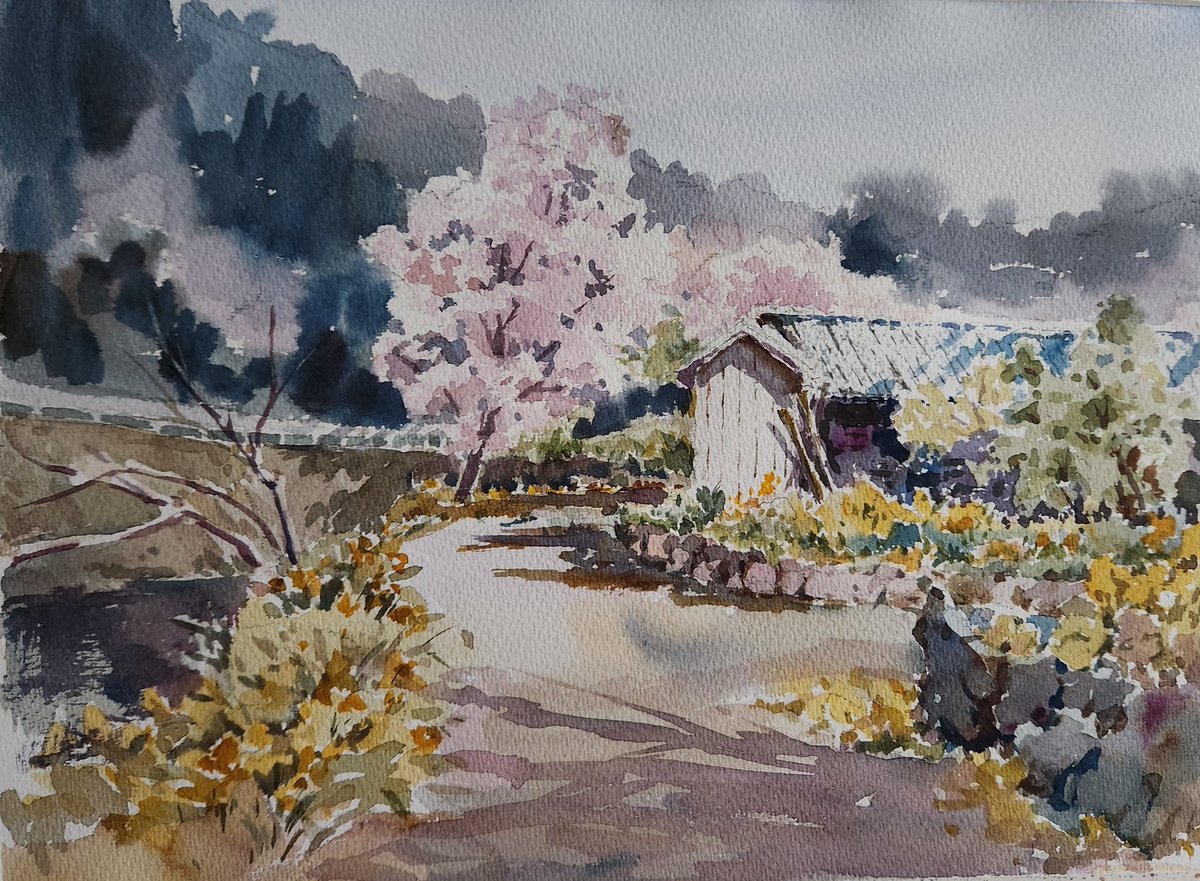 教室のデモで描いた春です。花の咲くのが待ち遠しいですね。#スケッチ #透明水彩画 #水彩画 #写生 #春 #東吾野 #風景画 #watercolor #watercolour #landscapepainting #sketch #higashiagano #aquarelle