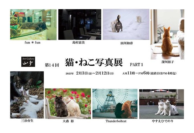 🐱ねこ・猫写真展 Part.1・2/3(金)~2/12(日) Part.2・2/17(金)~2/26(日) 11:00~18:00(12、26日は16時終了) Art Gallery山手 art-g-yamate.com (元町・中華街駅5番出口より徒歩3分) #猫 #写真展 #猫雑貨 #絵 #イラスト #下島みちこ #ArtGallery山手
