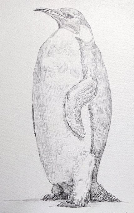 こんにちは✨ WANOEです☆ エンペラーペンギン (写真模写) 画用紙・鉛筆 2023 堂々としているエンペラーくん✨ (顔が少し隠れちゃうかな?) #絵描きさんと繫がりたい #エンペラーペンギン #写真模写 #イラスト #artwork #アート好きな人と繋がりたい #クリエイターの輪 #アート #アーティストの道