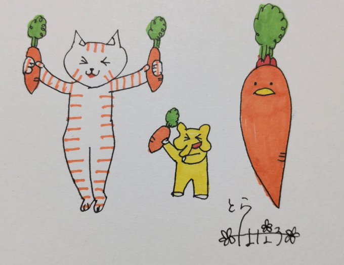 おはようございます!! #冬にんじんの日 人参祭りだー!!! 巨大ニワ人参 、登場!!🤭 今日も素適な木曜日を〜🤗 #絵描きさんと繫がりたい #みんなで楽しむTwitter展覧会 #イラスト #油性ペン #マッキー