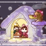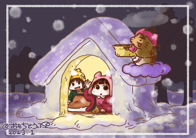 今週も寒い中お疲れさまでした(*´-`)🍵🍠♨️ ひなみちゃん達と一緒に、かまくらおこたで暖まっていきませんか♪ 『こっちゃきぃ♪こっちゃきぃ♪ʕ•ᴥ•ʔ』(ピンクのニット帽が派手すぎやしないか心配なえっちゃん💦) #冬のイラスト #子ども #ジャンガリアンハムスター