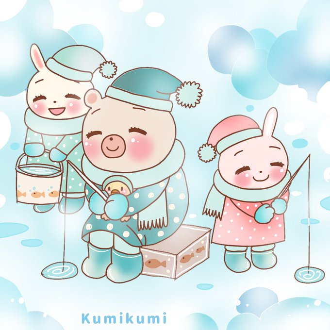 おはようございます❄️☺️ 今日のくまさん達の冬のお楽しみは #ワカサギ釣り です☺️🎣❄️ いっぱい釣れるかな🐻🐰🐰🐤🎶 #かわいい動物イラスト #ほっこり #冬のイラスト #イラスト #ワカサギの天ぷらたべたい