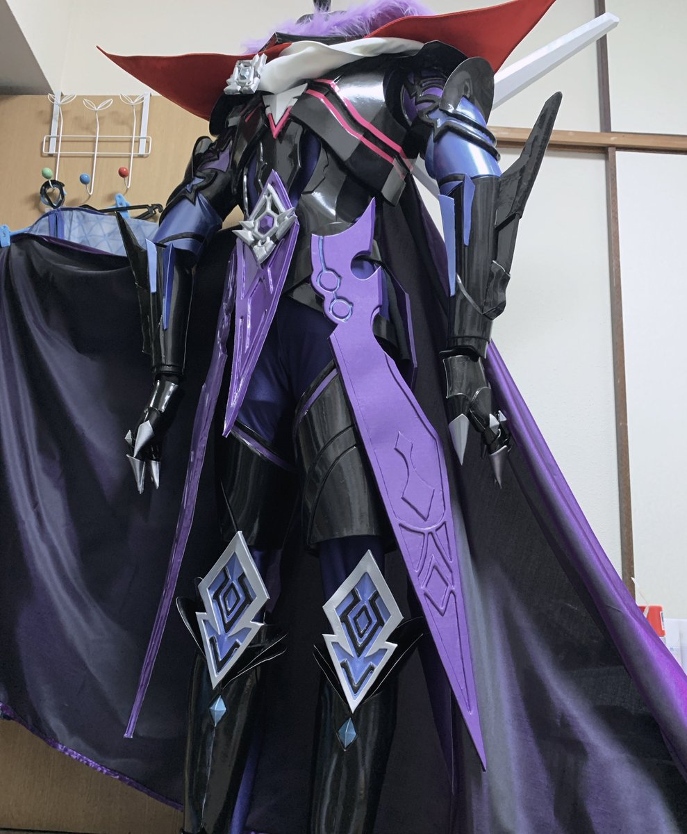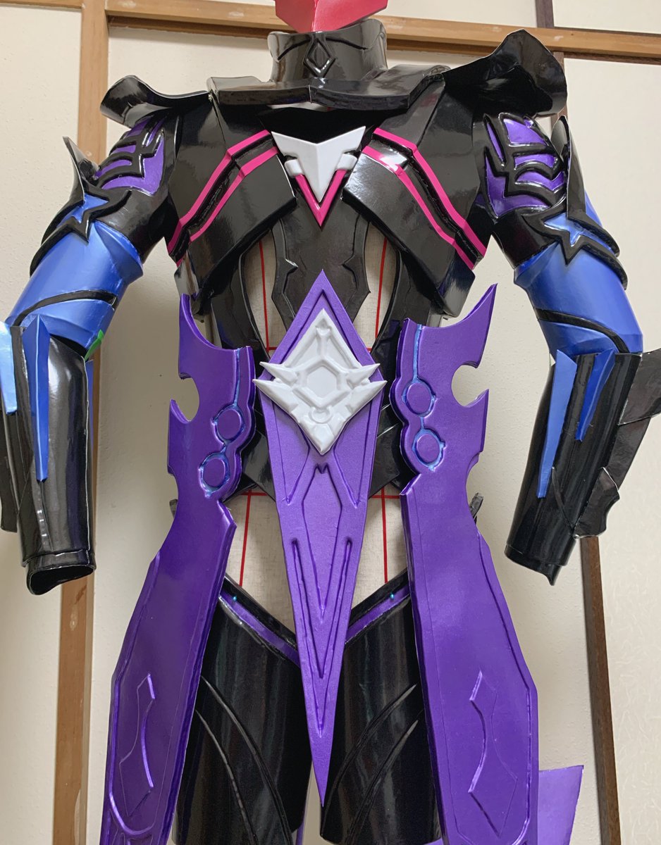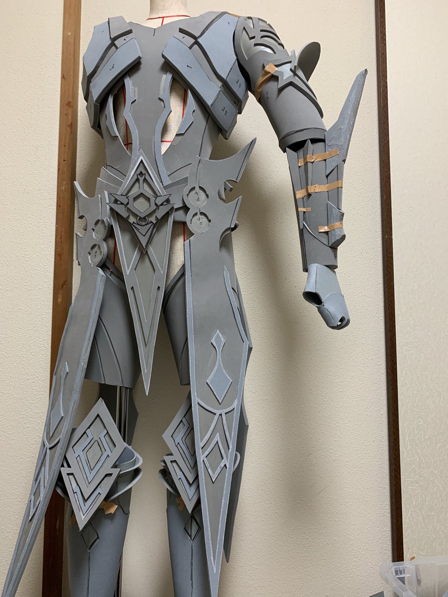 #今年一番気合い入れて作ったコスプレ衣装見せて 原神!!公子の魔王武装!!!! まだ塗装と武器残ってるので頑張ります!狂気の造形作業はまだまだ続きます!!応援の程宜しくお願いします!!! #冬一造形まとめ