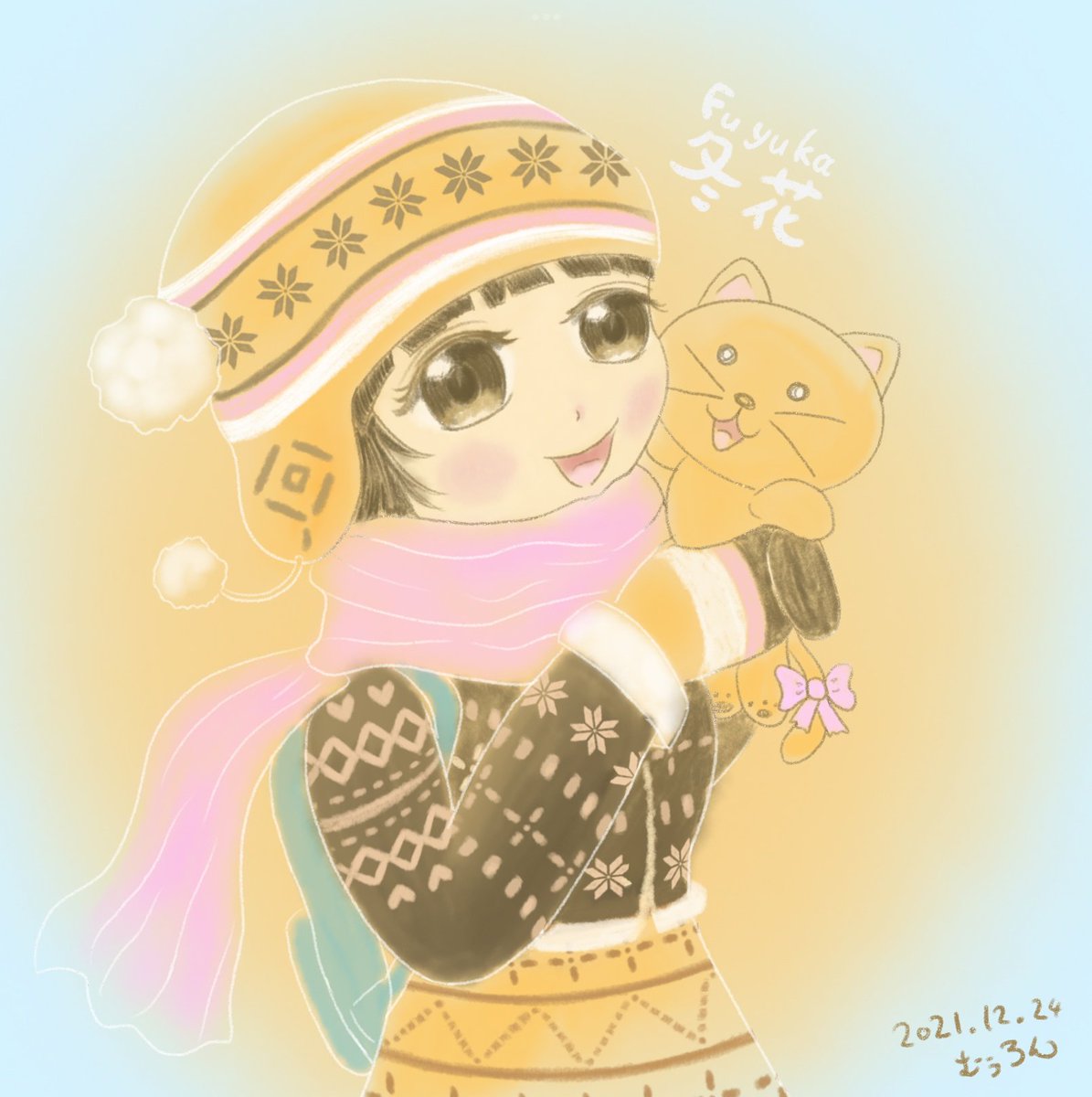 今年版冬アイコンちゃん完成🎨←遅🤣 無類の猫好き、次女 #冬花 ちゃん ぬいぐるみ😺にゃーさんと仲良しツーショット♪ 今年はよりらしさを出したくて、フラットだけどフワッとした感じに仕上げてみました☺️ 明日からアイコンバトンタッチ🙌✨ ←去年 今年→ #絵柄が好みって人にフォローされたい