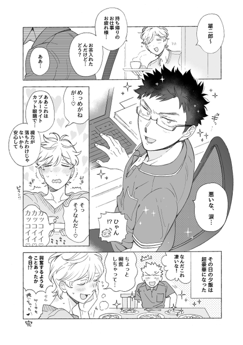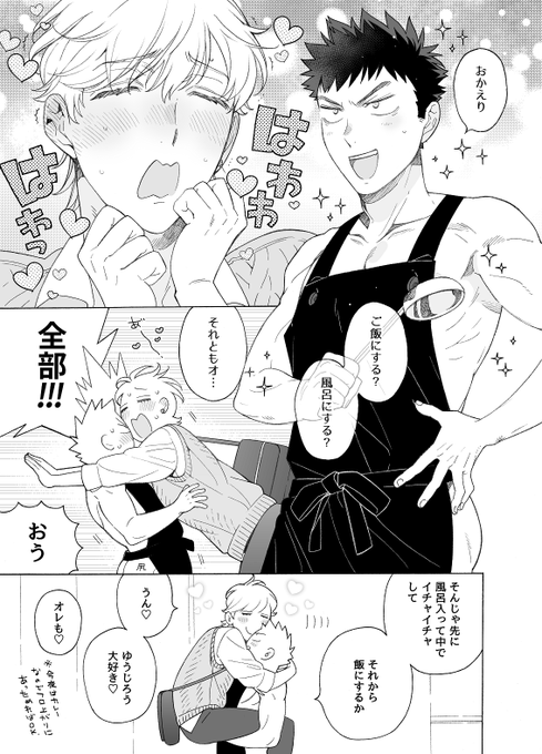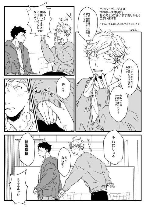 そんなこんなで私も湯煎先生のサプライズ本に参加させて頂きましたー!!末長くイチャイチャしててくれー!!頼むー!!!まぁ頼まれなくてもイチャイチャしてると思うけどー!! (よく見たらお祝い寄稿本なのに私の思いの丈をぶつけてるだけの絵だねこれアレ🤔?) #凸凹シュガーデイズ