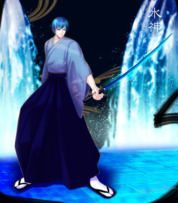 【曇天を裂く】描き慣れたかっただけの童顔マッチョ拙宅水神に和装2連続目 元から和の人みたいだな 普段洋装の人なので構えは和関係なく力任せ系統です #刀を構えるとフォローやrtが来るらしい #Clarityblue_ib