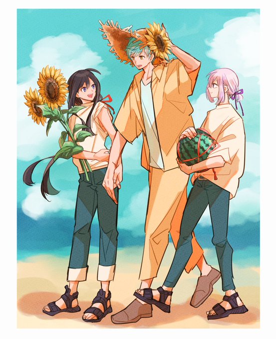 #刀剣乱舞好きと繋がりたい #とうらぶ #イラスト #イラスト好きさんと繋がりたい #絵描きさんと繫がりたい #絵柄が好みって人がいればいいなぁ #絵の世界 一年前に描いた一兄とずおばみちゃん!夏ですね~🌻🍉