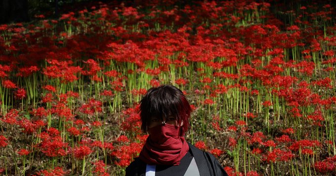 ⚠コスプレ/刀剣 【仏説摩訶般若波羅蜜多心経 観自在菩薩 行深般若波羅蜜多時】 江雪左文字:くまばち photo:HANABIちゃん(@HNB_DDD) #ビビコス #ビビコスなばなの里 #刀剣男士の花まつり
