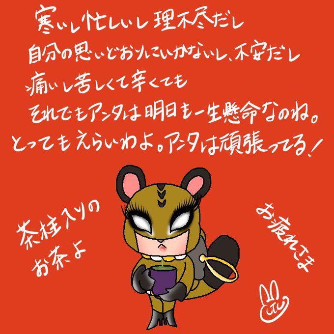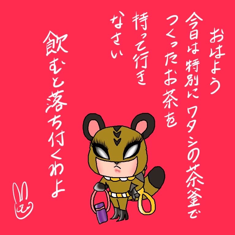 本日もお疲れさんでございやしたー!! 🦊っ🍵🍬 🟡分福イエロー🦝🍵 絶賛冬休み中の分福ちゃんが心配で来ちゃった♡ #妖怪ヒーローズ #妖怪 #分福茶釜 #たぬき #イラスト #私の絵柄が性癖に刺さる人に届いてほしい #みんなで楽しむTwitter展覧会 #年末