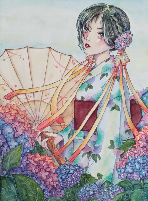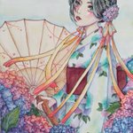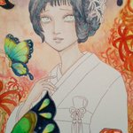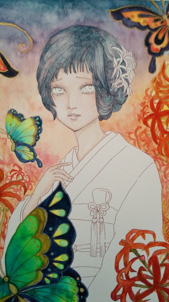 『Madam Butterfly🦋』 スーパービジョン1738がいい感じの色出してくれました🎵 あと、もう少し❤️ #イラスト #illustration #透明水彩 #スーパービジョン #分離色 #絵描きさんと繋がたい